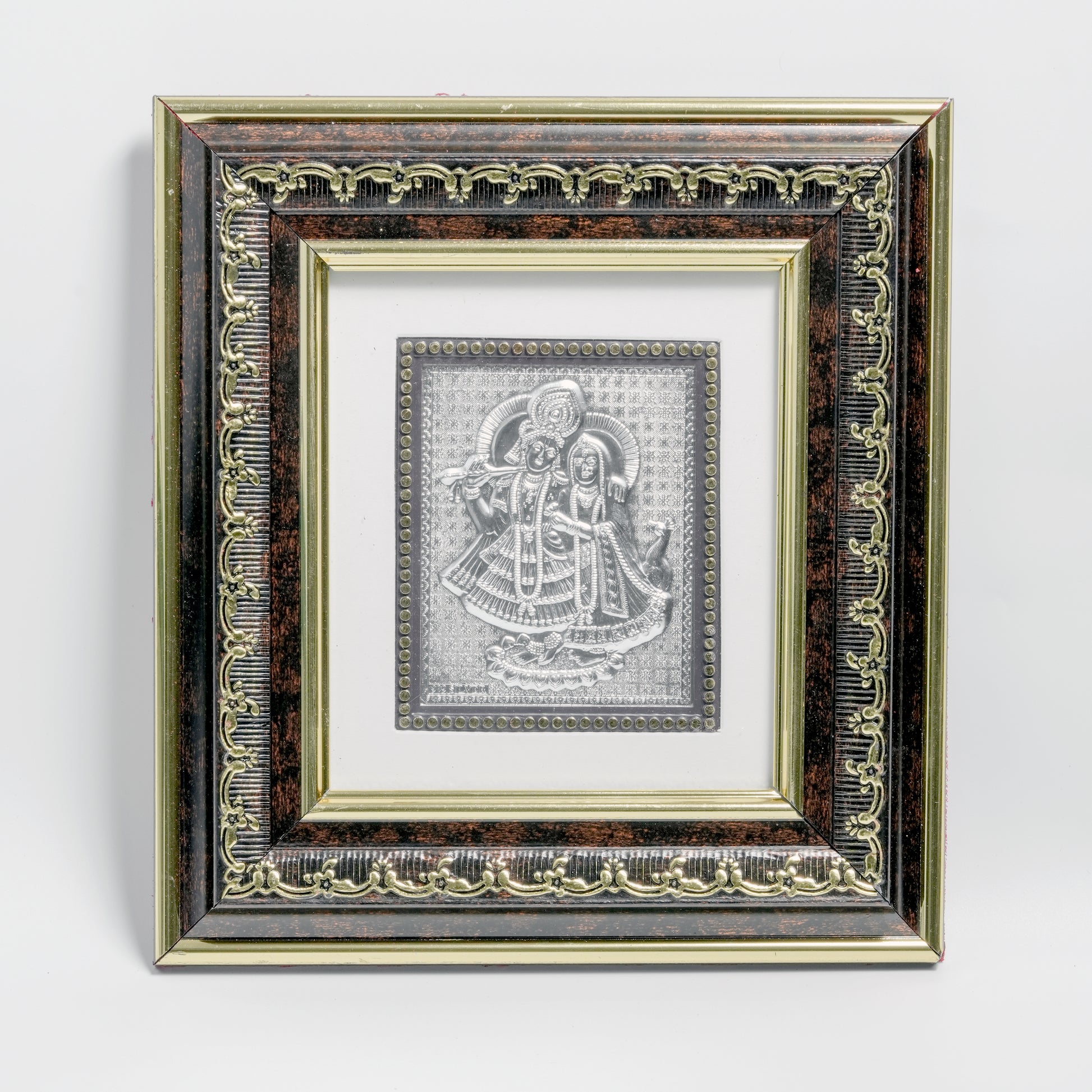 Bring divine elegance to your living space with this exquisitely crafted Silver Radha Krishna Decorative Frame from CHANDRIKA TALES. The artwork features a beautifully detailed silver relief of Radha and Krishna, symbolising love, harmony, and devotion.