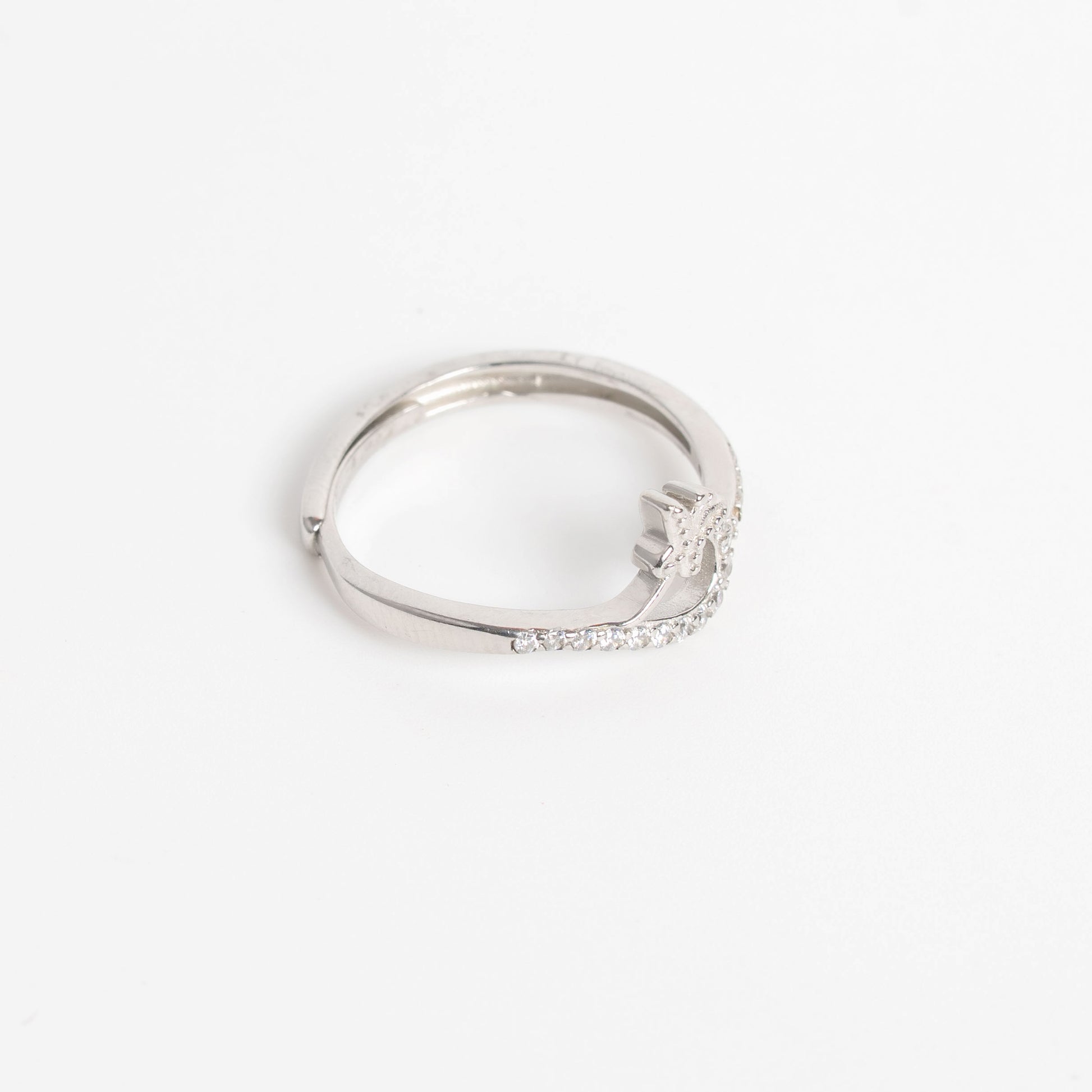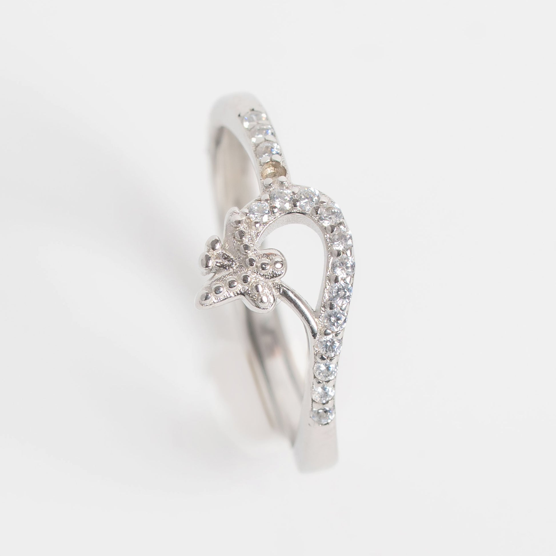 Crafted in premium sterling silver, this ring features a graceful butterfly motif flowing into a smooth, curved band. Sparkling stone accents are set along the elegant swirl, enhancing its feminine appeal. The lightweight design and smooth finish ensure all-day comfort, making it perfect for daily wear or special occasions.