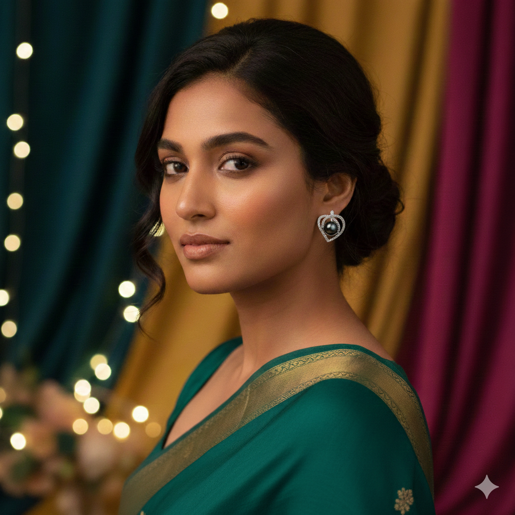 The Inspiration: Inspired by modern romance and dramatic contrast, these striking stud earrings from Chandrika Tales are a unique statement piece.