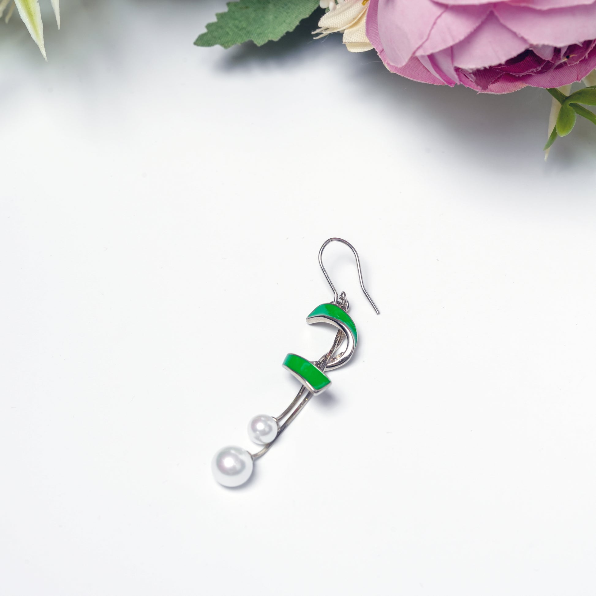 Make a graceful style statement with these beautifully designed spiral drop earrings featuring vibrant green enamel accents paired with lustrous pearl drops. Crafted in premium sterling silver, the elegant twisted silhouette adds movement and sophistication, making these earrings a perfect blend of modern design and timeless charm.