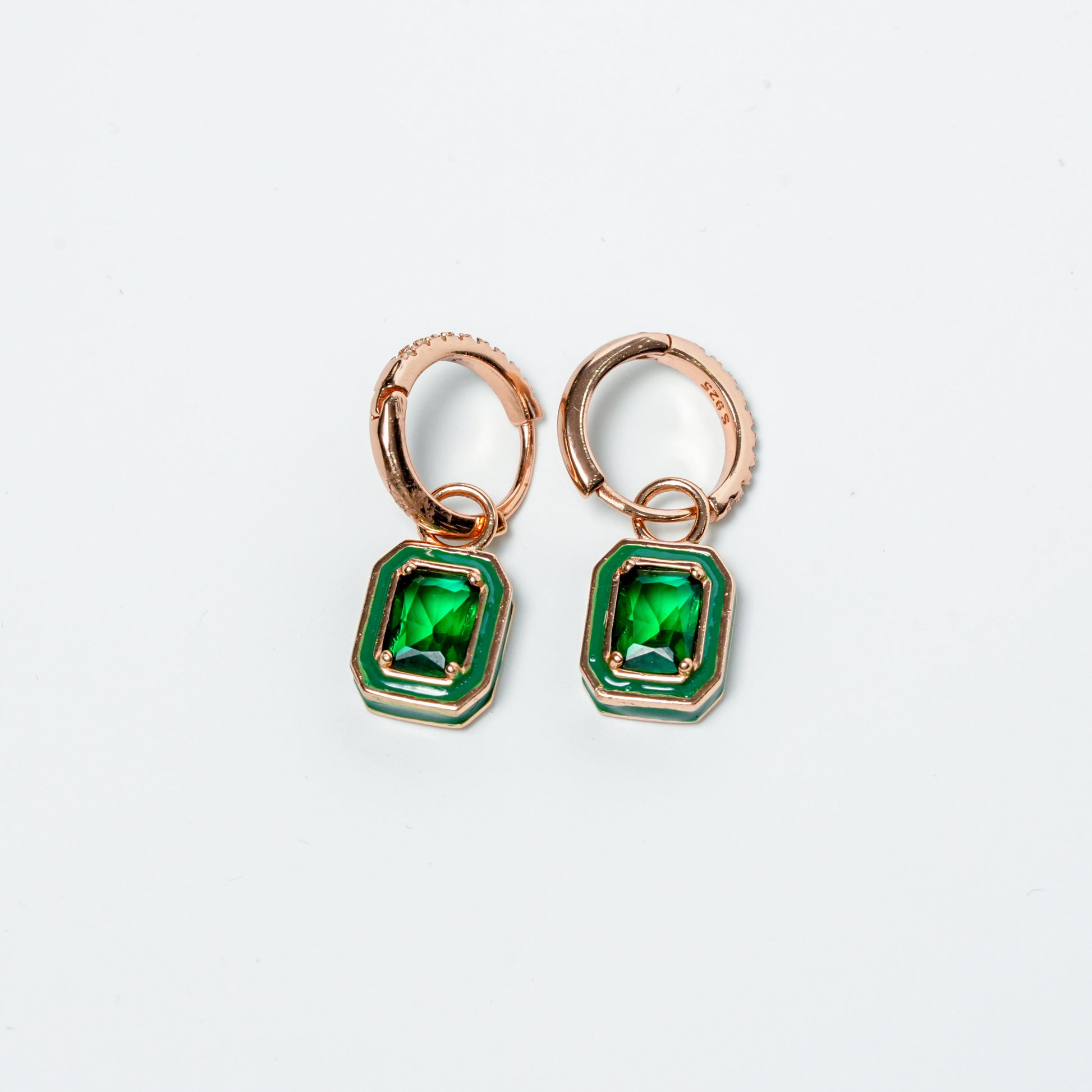 Elegant and eye-catching, these huggie drop earrings are crafted in premium sterling silver and designed to add a pop of colour to your jewellery collection. Featuring a beautifully cut emerald-green rectangular stone suspended from a sleek silver huggie, these earrings strike the perfect balance between modern sophistication and timeless charm.